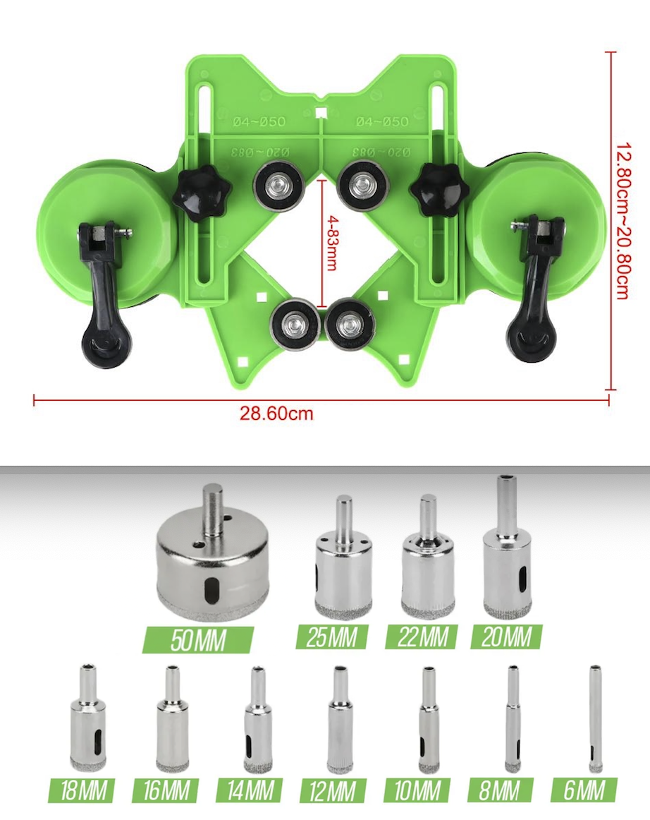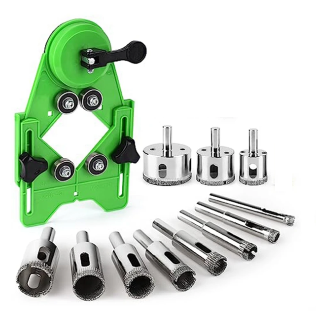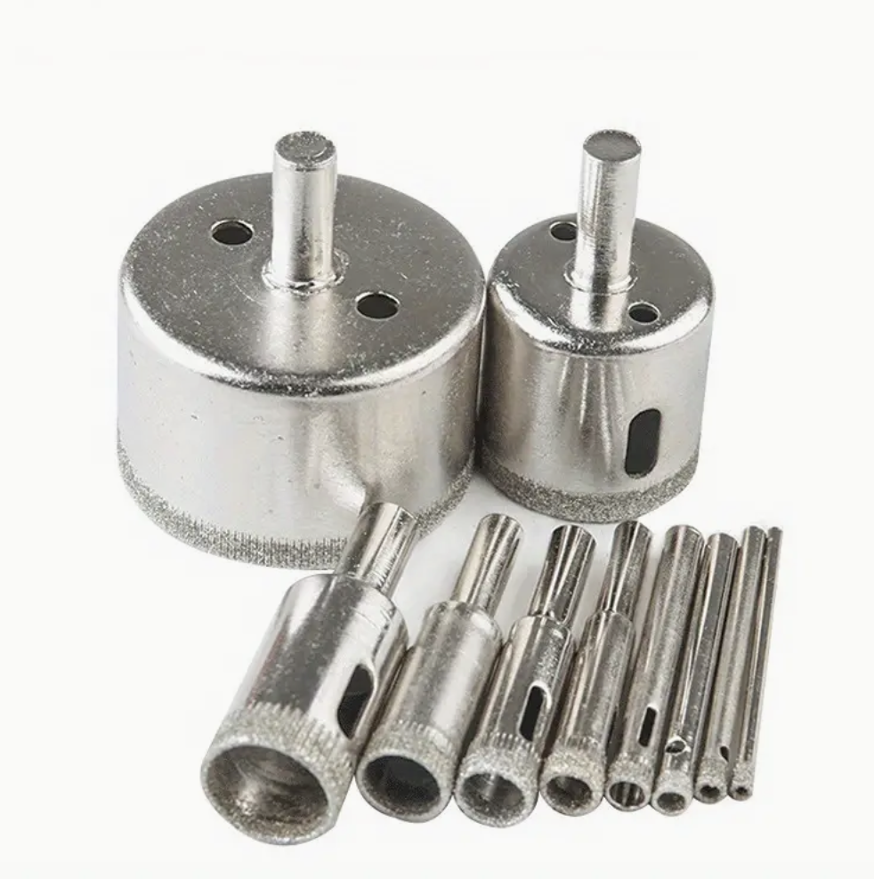 Універсальний набір для свердління плитки та алмазні коронки — це ідеальне рішення для точного та безпечного створення отворів у склі, плитці, мармурі, кераміці та інших делікатних матеріалах.